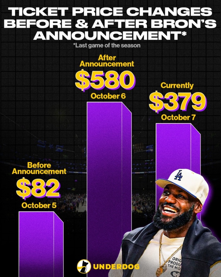 Theo báo cáo từ các nền tảng bán vé cũ, trước khi James phát hành bản xem trước "Quyết định 2", vé rẻ nhất cho trận đấu sân nhà cuối cùng của Lakers trong mùa giải mới là 82 USD. Khi James tung ra trailer, giá vé thấp nhất đã tăng lên 580 USD.